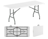 - 6 ft Portable Folding Table 350 LBS Fold-in-Half Table with HDPE Tabletop-White