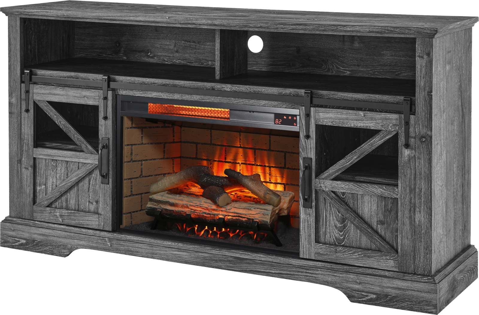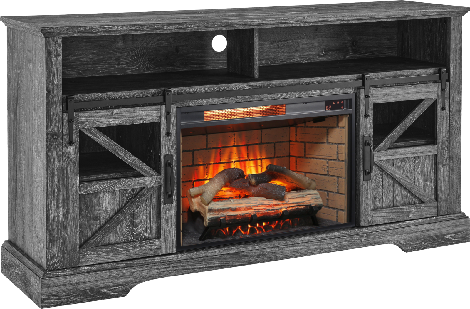 - 60 Inch Dark Rustic Oak Electric Fireplace Entertainment Center w/ Sensor