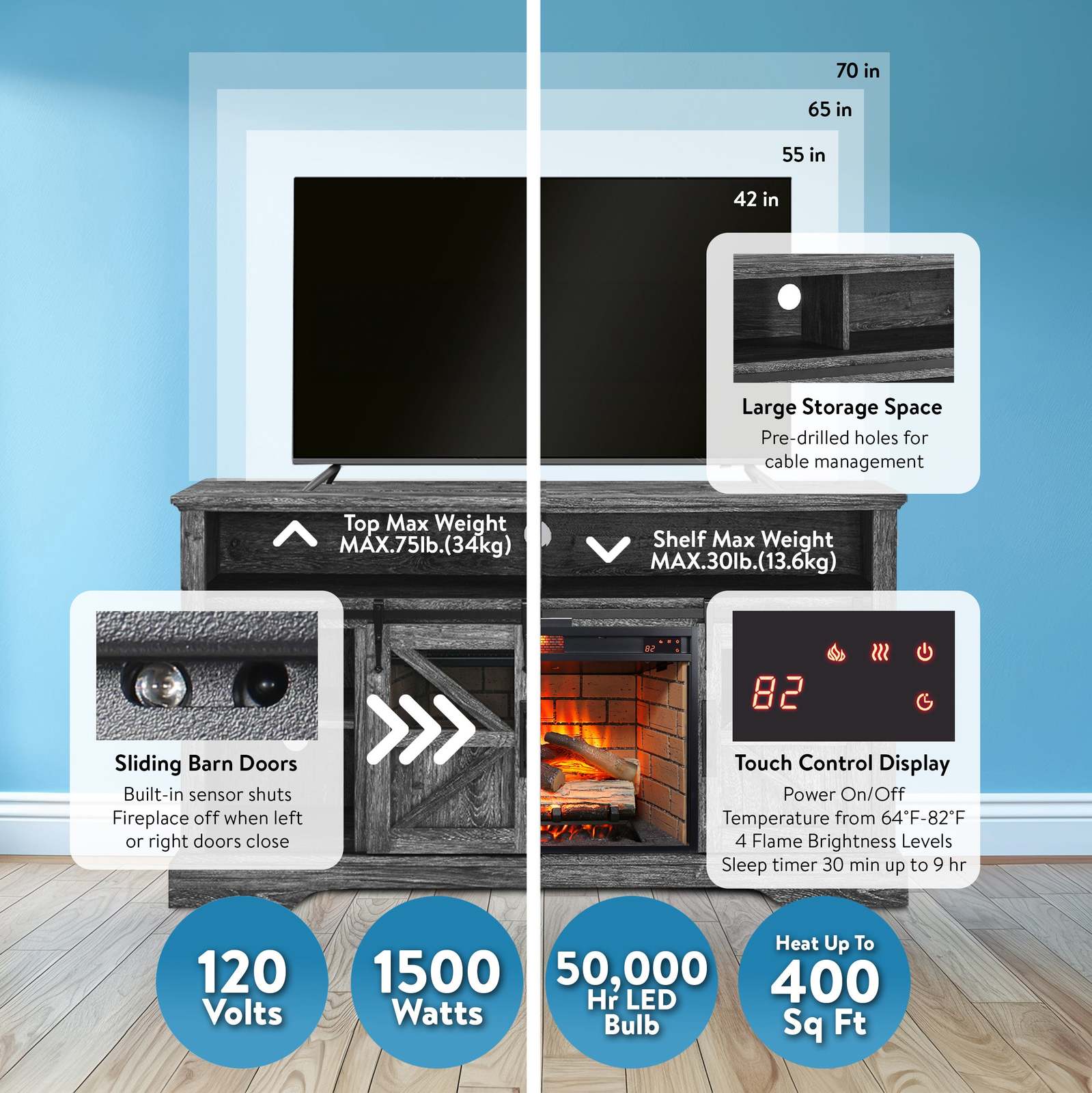 The modern and traditional farmhouse style increases the aesthetic of your living room,fireplace cabinet or use it freestanding,can enjoy the flame effect without heat,Multi-color flame adjustable
