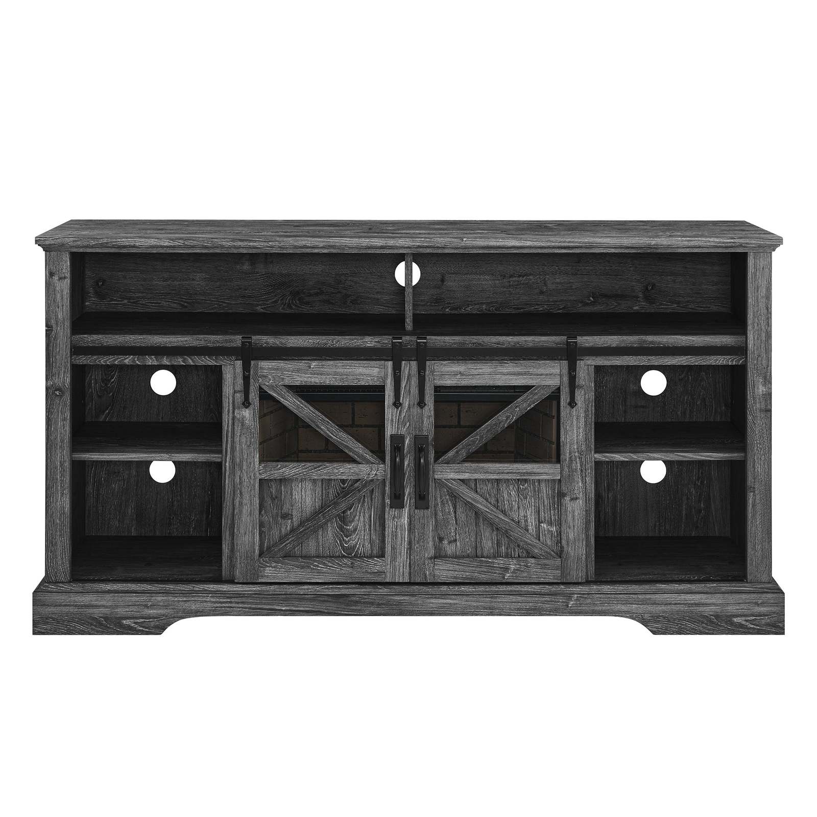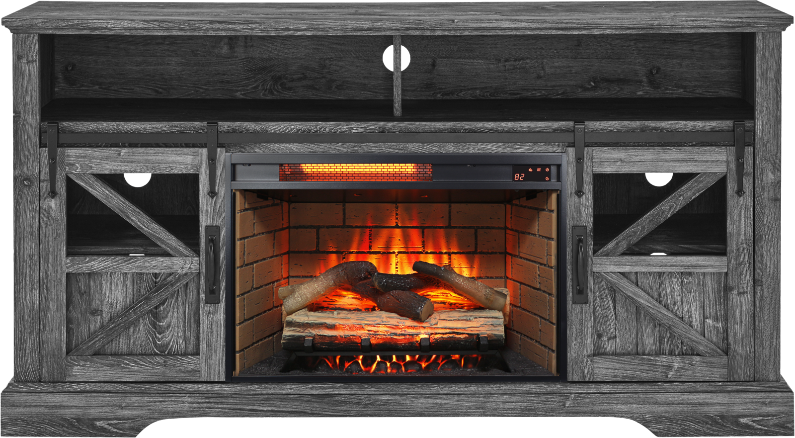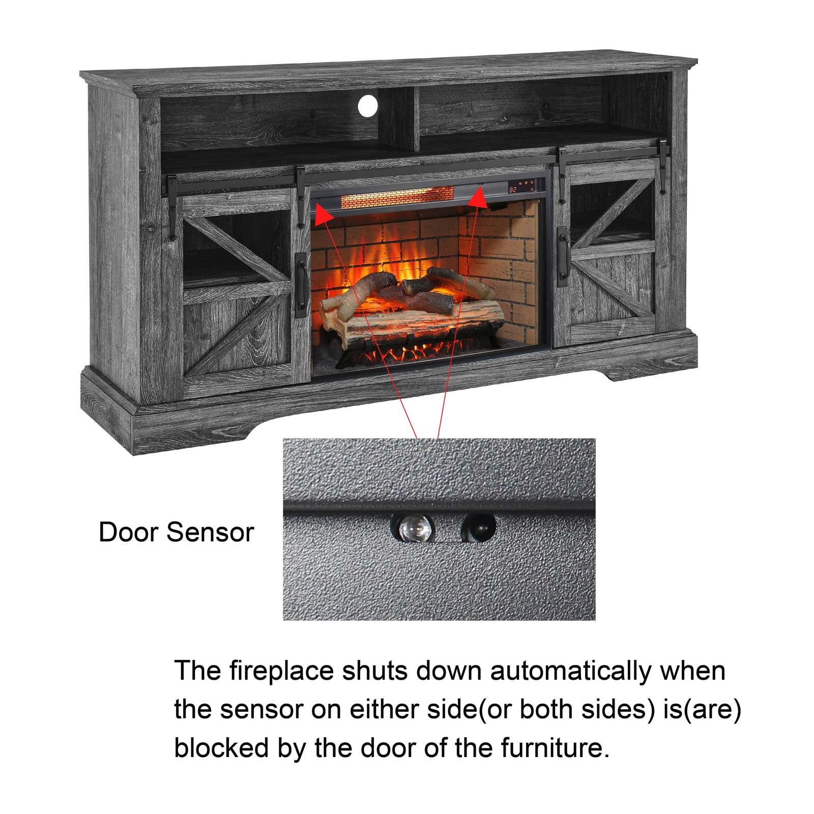 60 Inch Dark Rustic Oak Electric Fireplace Entertainment Center w/ Sensor