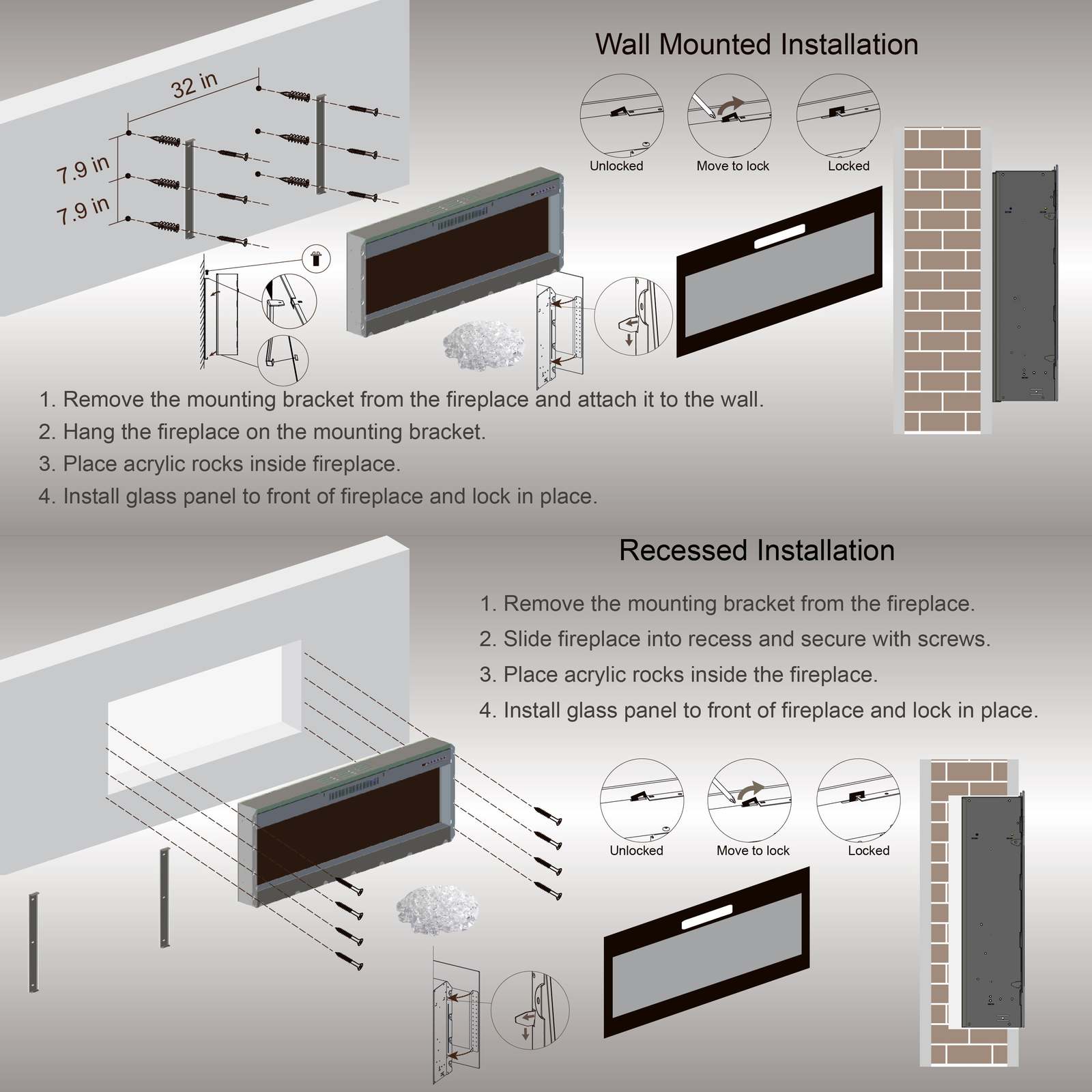 60 Inch Electric Fireplace: Recessed & Wall Mounted