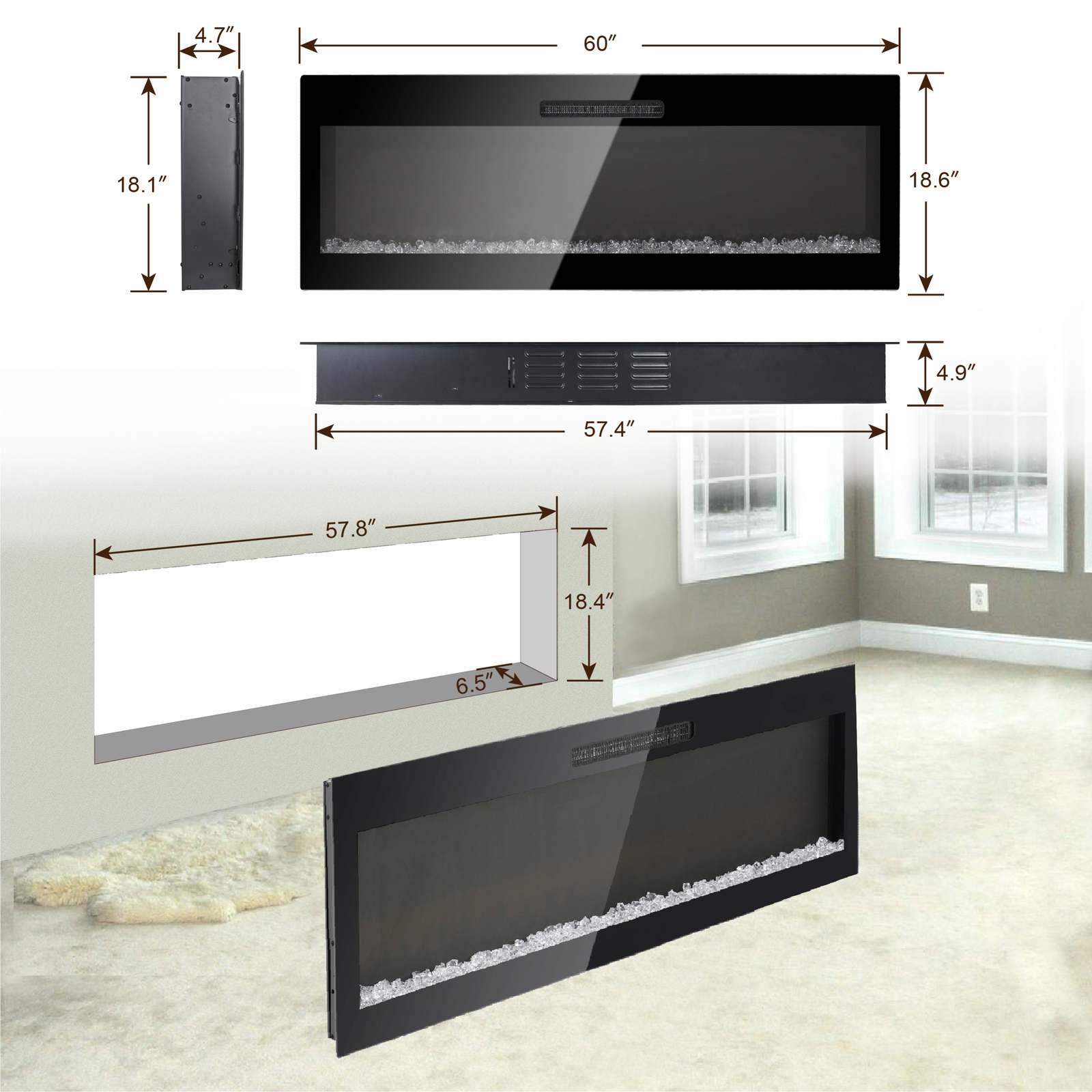 - 60 Inch Electric Fireplace: Recessed & Wall Mounted