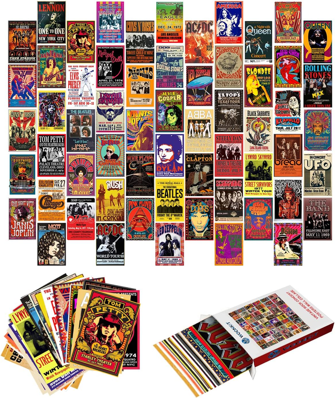- 60 PC Vintage Rock Band Posters, 70S 80S 90S Retro Concert Prints, Bedroom Wall