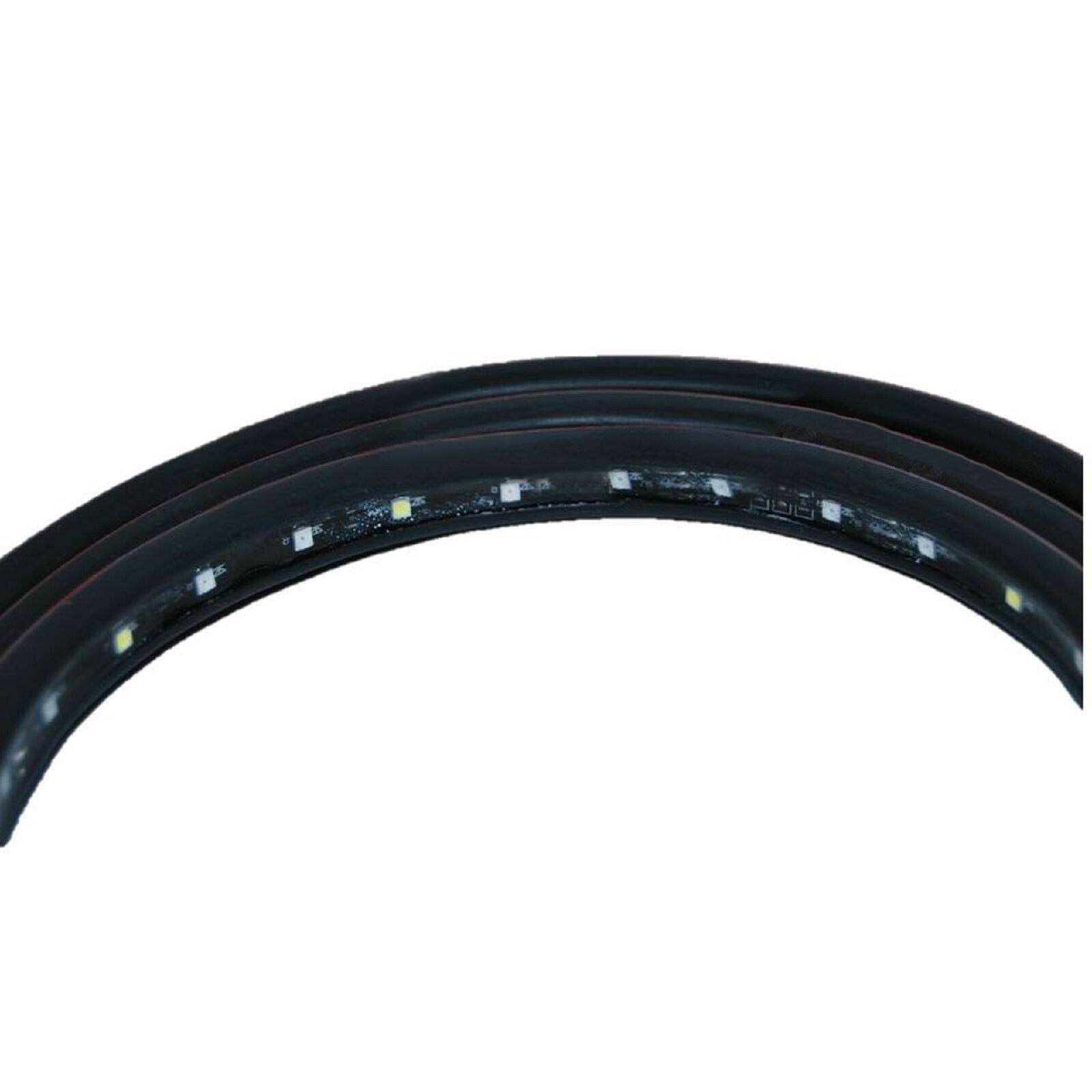 12 VOLT WATERPROOF LED LIGHT STRIP WITH 3M TAPE ON THE BACKSIDE FOR EASY INSTALLATION. INCLUDES PLUG AND PLUG CONNECTOR - STANDARD FLAT 4-PIN TRAILER CONNECTION PLUG.