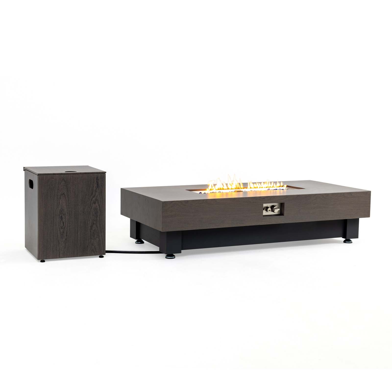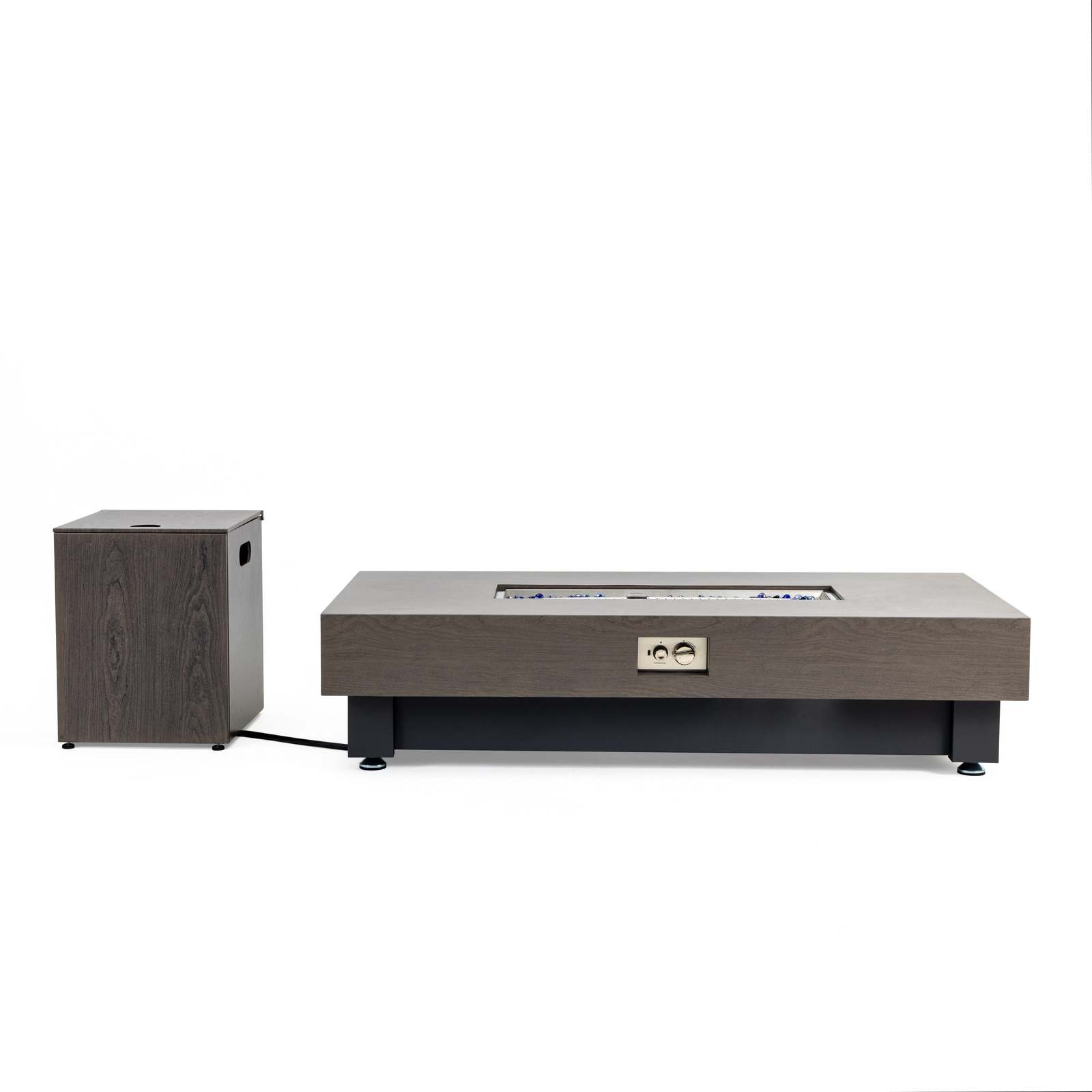 Modern Design Durable Construction: Featuring a sleek, contemporary design with stone or walnut wood finish options, this outdoor fire table combines elegance and functionality. Built with a robust stainless steel burner bowl for low maintenance and heat resistance.