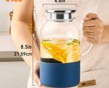 - 61 Ounce Glass Water Jug Set of 2, Blue Silicone Bottom - Detachable