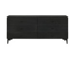 This 63-inch black six drawer double dresser is a practical and good looking accent for your bedroom storage and organizational needs. This horizontal double dresser has column style drawers and a wide top surface area to help you with your daily dressing essentials. Loaded with capacity, this piece is equipped with six easy open drawers for practical and good looking clothing storage. Its a high quality piece, made from high grade manufactured wood. The black coloration of this piece gives it an updated, and modern edge. 28-inch H x 63-inch W x 20-inch D
