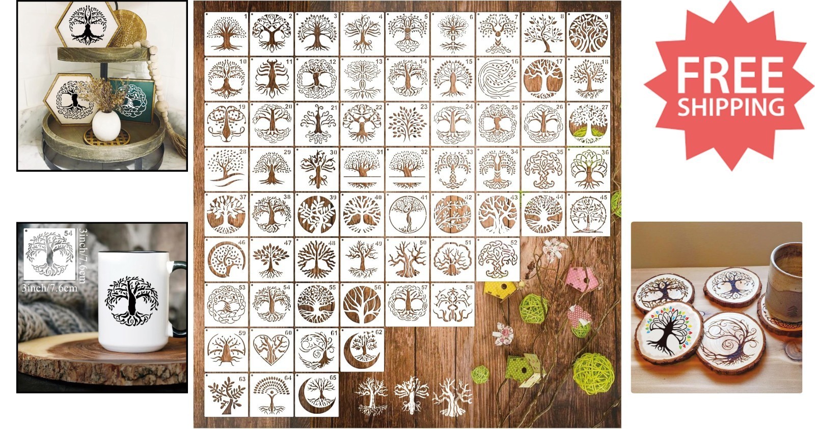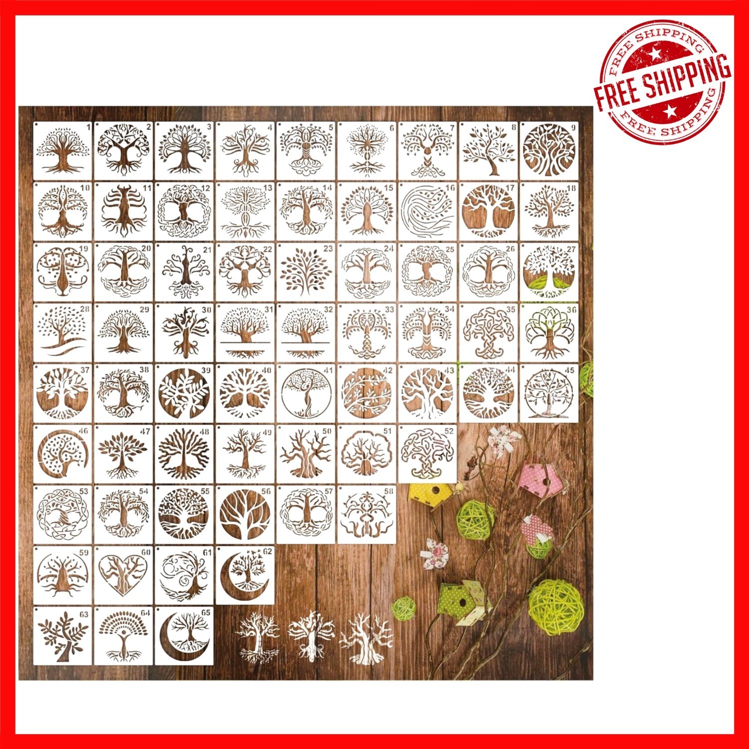 - 65-Piece Tree Stencils for Painting on Wood - 3-Inch Reusable Craft Templates