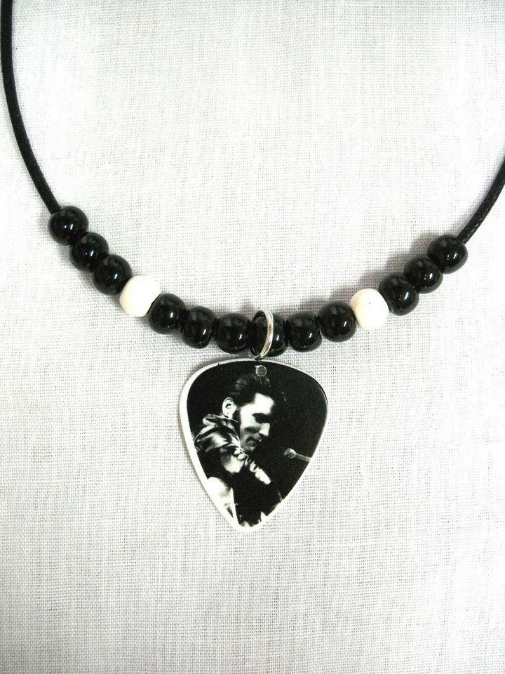 - 68 SPECIAL BLACK & WHITE ELVIS PRESLEY PHOTO GUITAR PICK PENDANT ADJ NECKLACE