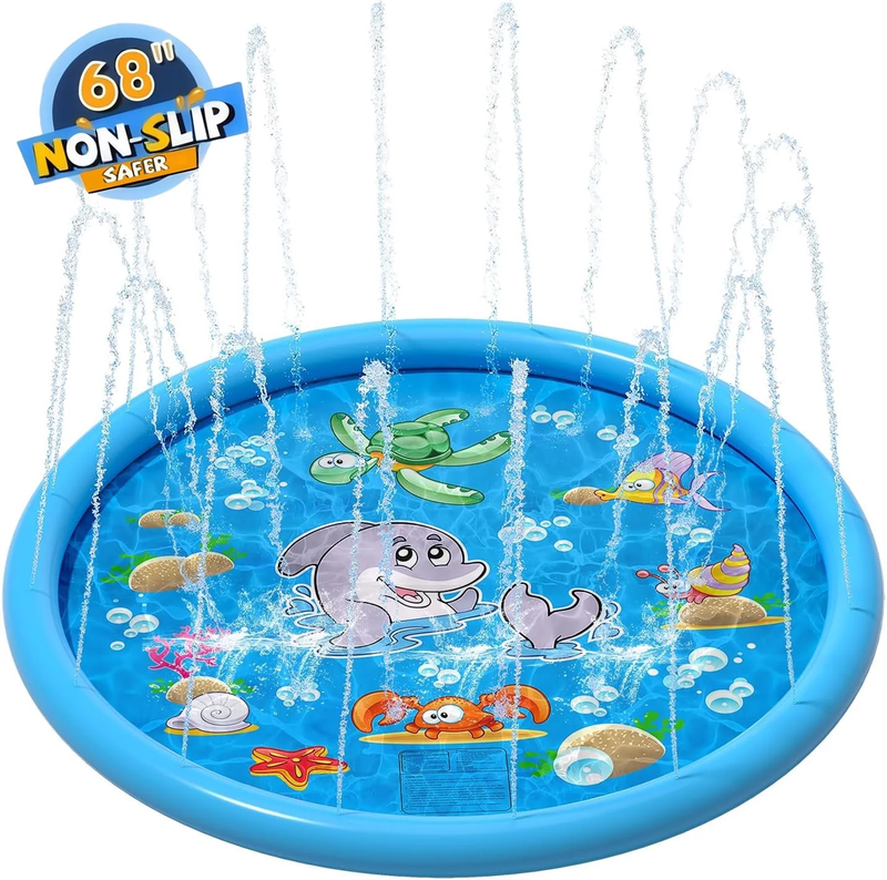 - 68" Water Sprinkler Pad, Inflatable Splash Pad for Kids and Adults Summer Outdoo