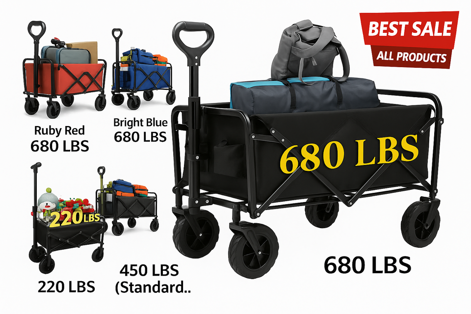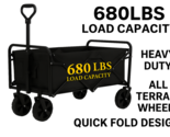 Tackle every task with the Heavy-Duty All-Terrain Folding Wagon Cart ? built to handle up to 680 LBS of weight with effortless mobility and easy folding convenience. Whether you?re gardening, camping, shopping, or heading to the beach, this durable cart is your go-to helper for transporting equipment, groceries, and gear.