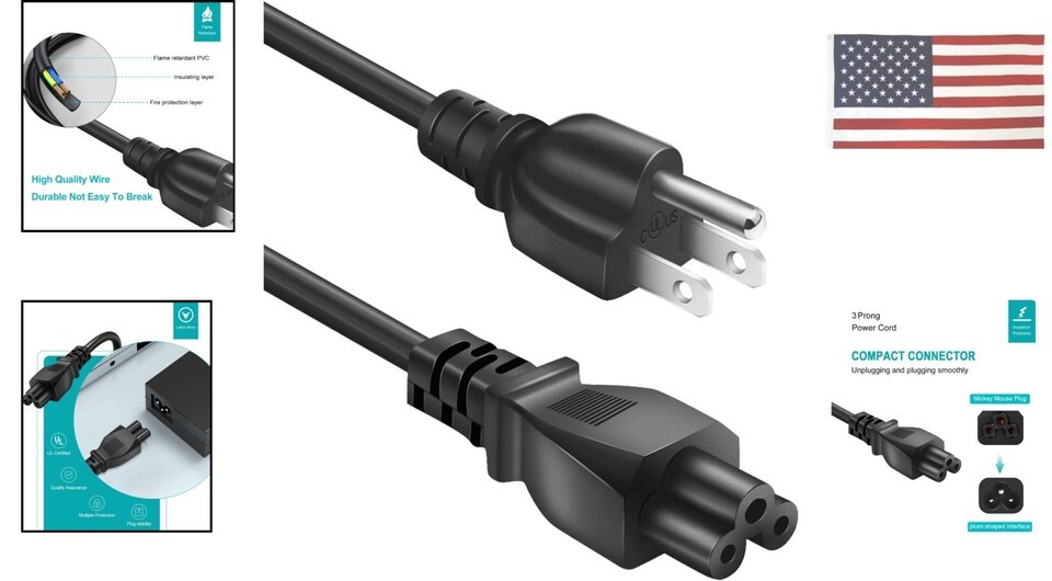 6FT 3-Prong AC Charging Power Cord