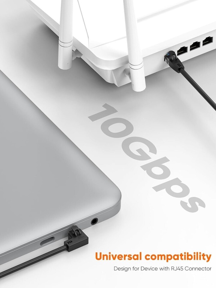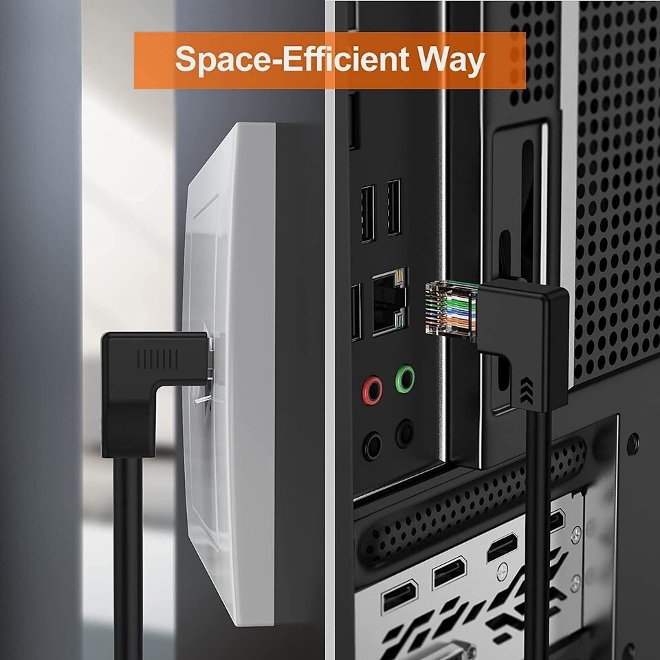 90 Degree Right Angle: Perfectly engineered for tight spaces, this design ensures that you can connect your laptop or network devices without any strain on the cable, preventing bend and damage.