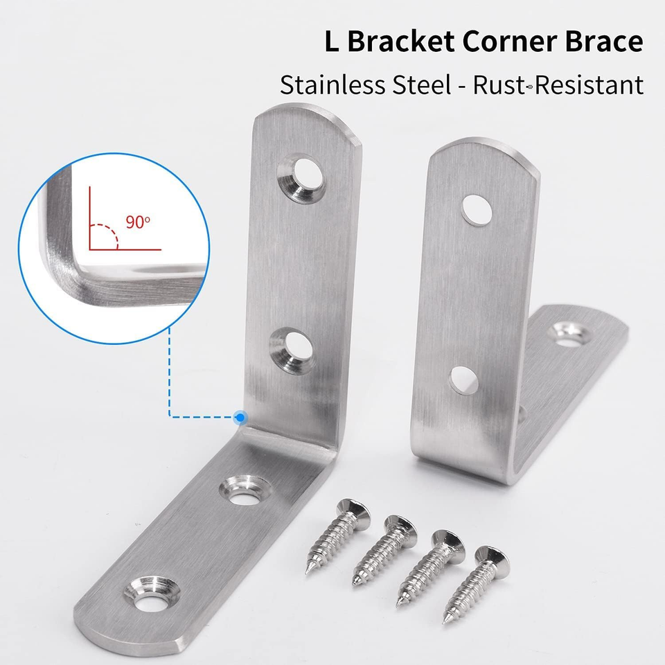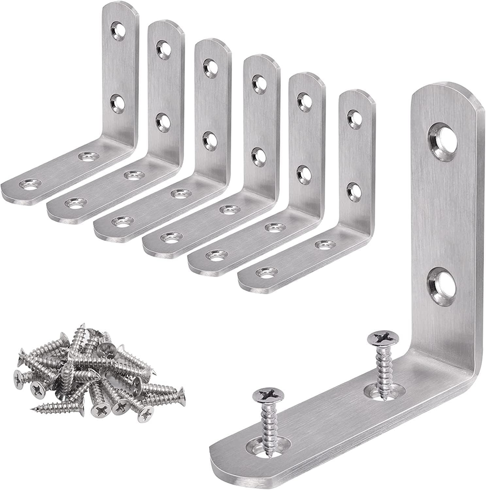 Secure and strengthen your wood furniture with this 6PCS Heavy-Duty L Bracket Set. Designed with precision 90 angles and a sleek brushed stainless steel finish, these corner braces are perfect for reinforcing shelves, chairs, tables, and more.