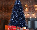 6ft Black Christmas Tree, 350 LED, PE+PVC, Halloween & Holiday Decor