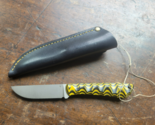 - 7.5" Damascus Steel Hunting Skinning Knife Composite Handle With Leather Sheath