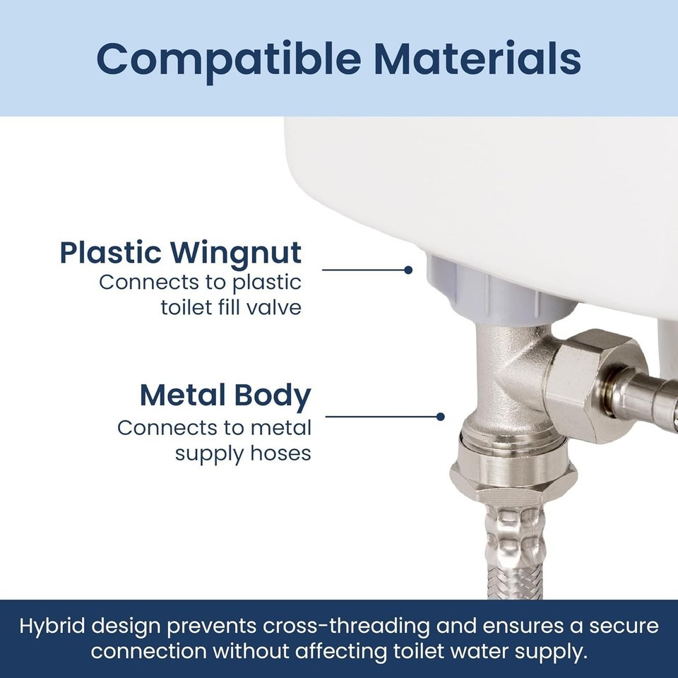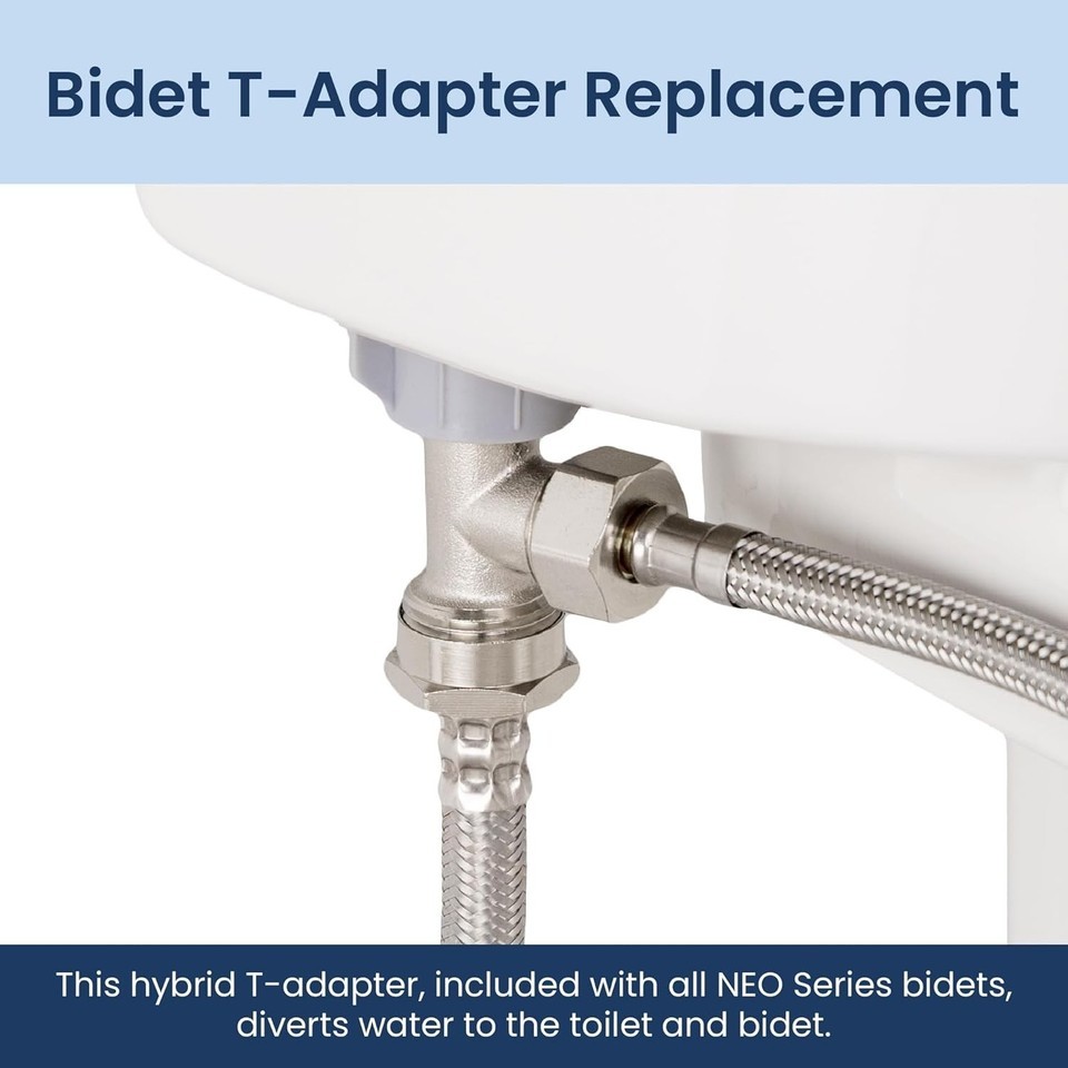 7/8 x 7/8 x 1/2 Hybrid Metal Plastic Cold Water T-Adapter for Bidets ? Only Compatible with NEO Series Bidet Attachments (Nickel) ? ? ? ? ? ? ? ? ? ? ? ? ? ? ? ? ? ? Hybrid Metal Plastic Cold Water T-Adapter for Bidets Size: 7/8 x 7/8 x 1/2 Color: Polished Nickel ONLY COMPATIBLE with NEO Series Bidet Attachments Features: FITS PERFECTLY: Designed specifically for NEO models; incompatible with NEO PLUS models. HIGH-QUALITY MATERIALS: Featuring a plastic top connection that interfaces seamlessly with your toilet fill valve, while the metal body connects securely with metal water supply and bidet hoses. BUILT TO LAST: Each adapter undergoes rigorous quality testing to guarantee a leak-free experience. QUALITY: Crafted from durable brass with a polished nickel finish resistant to corrosion for long-lasting use. CUSTOMER SUPPORT: Our dedicated Customer Care team is ready to ensure your complete satisfaction. We're just one call away for any inquiries or issues. Benefits: Ensure a perfect fit with NEO Bidet models?no more worrying about compatibility. Depend on high-quality materials for a secure, leak-free connection every time. Enjoy the sophistication of a polished nickel finish that complements modern bathroom aesthetics. Gain peace of mind with our exceptional customer service, available to address any questions you may have. Why Choose Our T-Adapter? Elevate your bathroom experience with the Hybrid Metal Plastic Cold Water T-Adapter designed specifically for NEO series. Constructed from materials, this T-Adapter not only ensures a perfect connection, but also enhances the functionality and longevity of your bidet attachment. With its polished nickel finish, it combines elegance with reliability, serving as a discreet yet essential component of your bathroom setup. Don't compromise on quality?choose our T-Adapter for a seamless, satisfying experience every time you use your bidet. Order yours today and discover the difference quality can make! Shipping Free Fast Shipping - We offer free shipping to most of the USA with a normal delivery time of 3-7 days. However, due to the current situation, additional delivery time (up to 3 weeks) may be required for some items. Alternative Carriers - We may use alternative carriers (e.g. USPS, FedEx, UPS, etc.) to ensure your package arrives safely and on time. Due to the use of multiple carriers, we are unable to provide a tracking number automatically. Handling Time - Orders are processed and shipped within 1-2 business days of receiving cleared payment. Shipping Restrictions - Shipping to Alaska, Hawaii, Puerto Rico, Guam, and other US territories may incur shipping charges or delivery restrictions. Please contact us before ordering, or your order can be refunded/cancelled. State Restrictions - There may be restrictions based on your state of purchase. For example, certain items may not be shipped to California due to state regulations. Contact for Tracking Updates - If you require tracking updates or have any concerns about the delivery of your order, please feel free to contact us, and we will be happy to assist you. Return 30-Day Hassle-Free Returns - We want you to be completely satisfied with your purchase. If you are not, you can return the item within 30 days of receiving it for a full refund or exchange. Easy Return Process - To start a return, simply contact us and we will provide you with a prepaid return shipping label and detailed instructions. Restocking Fee - There are no restocking fees for returns. However, the buyer is responsible for return shipping costs if the return is not due to a seller's error. Refund Processing Time - Refunds will be processed within 5 business days of receiving the returned item in its condition. Payment We accept all major credit cards, PayPal, and Apple Pay for your convenience. Your payment information is secure and encrypted to ensure a safe and seamless transaction. Please complete your payment within 3 days of purchase to avoid any delays in shipping. Feedback Your feedback is extremely important to us. We strive to provide the best products and customer service possible. If you are satisfied with your purchase, please take a moment to leave us a positive review. If you have any concerns or issues with your order, please contact us before leaving negative feedback. We are committed to resolving any problems and ensuring your satisfaction. Contact Us If you have any questions or concerns, please feel free to out to our customer support team. You can contact us through the messaging system. We are available Monday to Friday, 9:00 am to 5:00 pm EST, and we will do our best to respond to your inquiry within 24 hours. Buy it now and enjoy a pleasant shopping experience! Item Diameter: 7/8 inch Item Diameter (Interior): 1/2 inch Unit Quantity: 1 EAN: 859216005527 Suitable For: Bidet,Toilet Items Included: Adapter Material: Brass,Metal,Plastic Room: Bathroom Features: Leak-Free Compatible Model: For LUXE Bidet NEO MPN: BLAUX Bidet Water Tank Type: Adapter Number in Pack: 1 Shape: Standard Color: Nickel