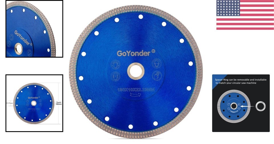 - 7" Blue Diamond Blade for Fast & Smooth Cutting of Porcelain and Granite