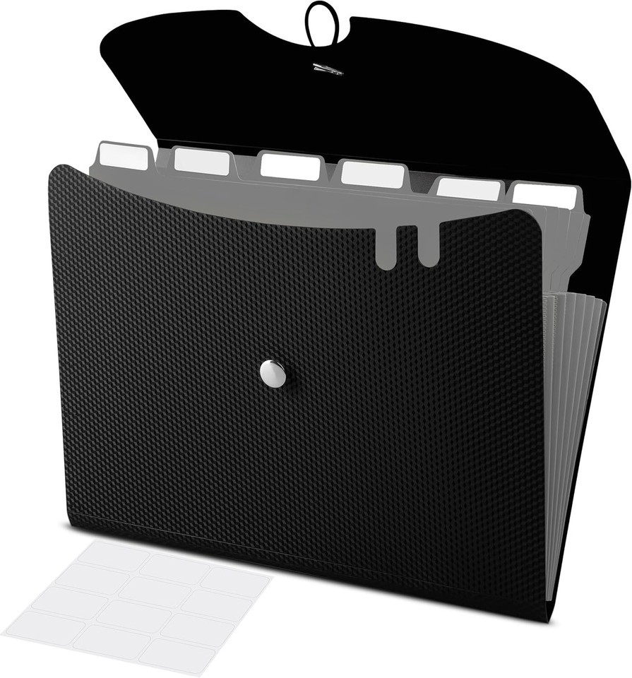 7 Pocket Expanding File Folder - Black - 13" x 9.8" - Accordion Folder to Keep