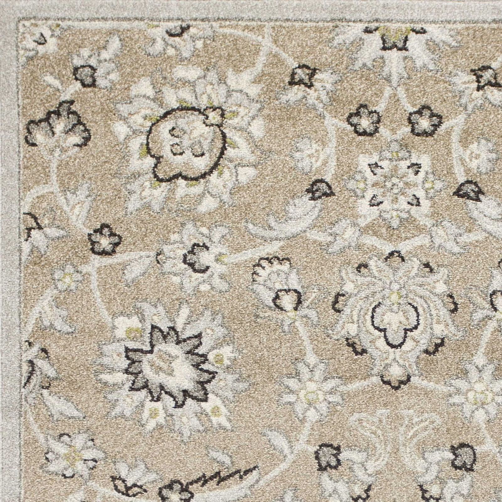 - 7 X 11 Beige Or Grey Floral Vines Uv Treated Indoor Area Rug