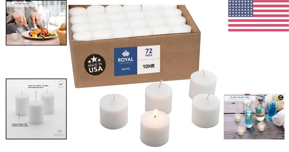 72 Clean-Burning Candles: 10-Hour Unscented Votive for Indoor Outdoor Use
