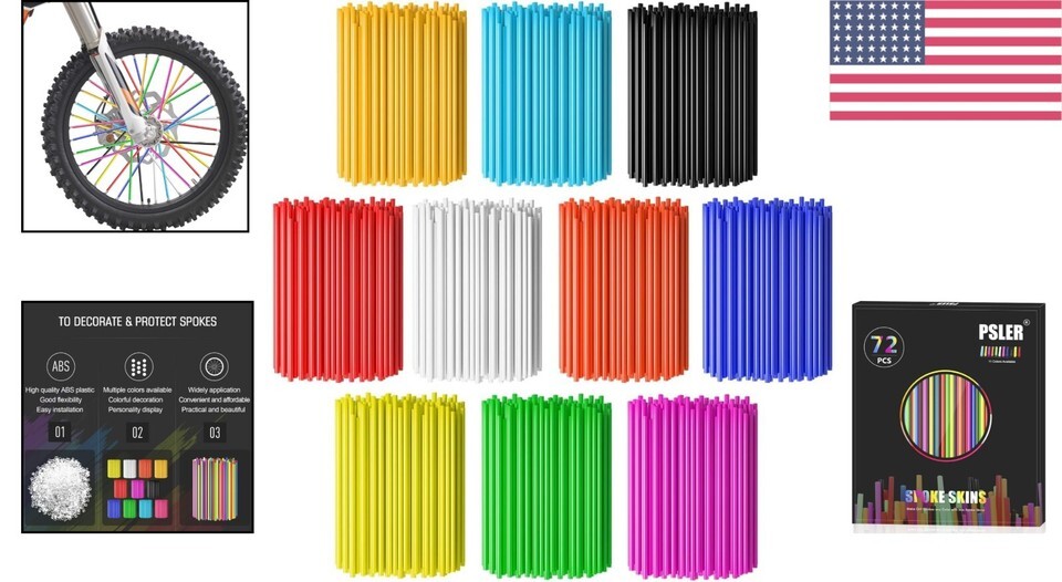 Elevate your cycling experience with our 72 PCS Mixed Color Spoke Trim Wraps, providing both style and protection for all types of bicycles and motorcycles. Crafted from high-quality ABS plastic, they deliver durability without compromising on lightweight ease of use.