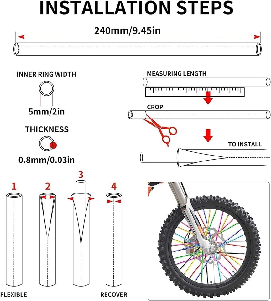 72 PCS Mixed Color Spoke Trim Wraps - Lightweight Protection for Motorcycles