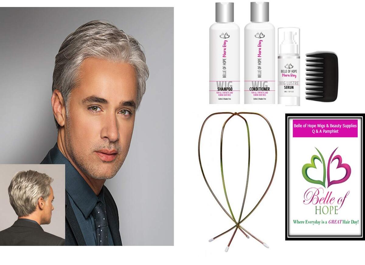 - 7pc Bundle: CLASSIC Men's Synthetic Men's Wig by HIM, Mara Ray Luxury 4Pc Travel
