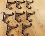 Primary image for 8 BROWN RUSTIC COAT HOOKS ANTIQUE STYLE CAST IRON 4.5" WALL DOUBLE RESTORATION !
