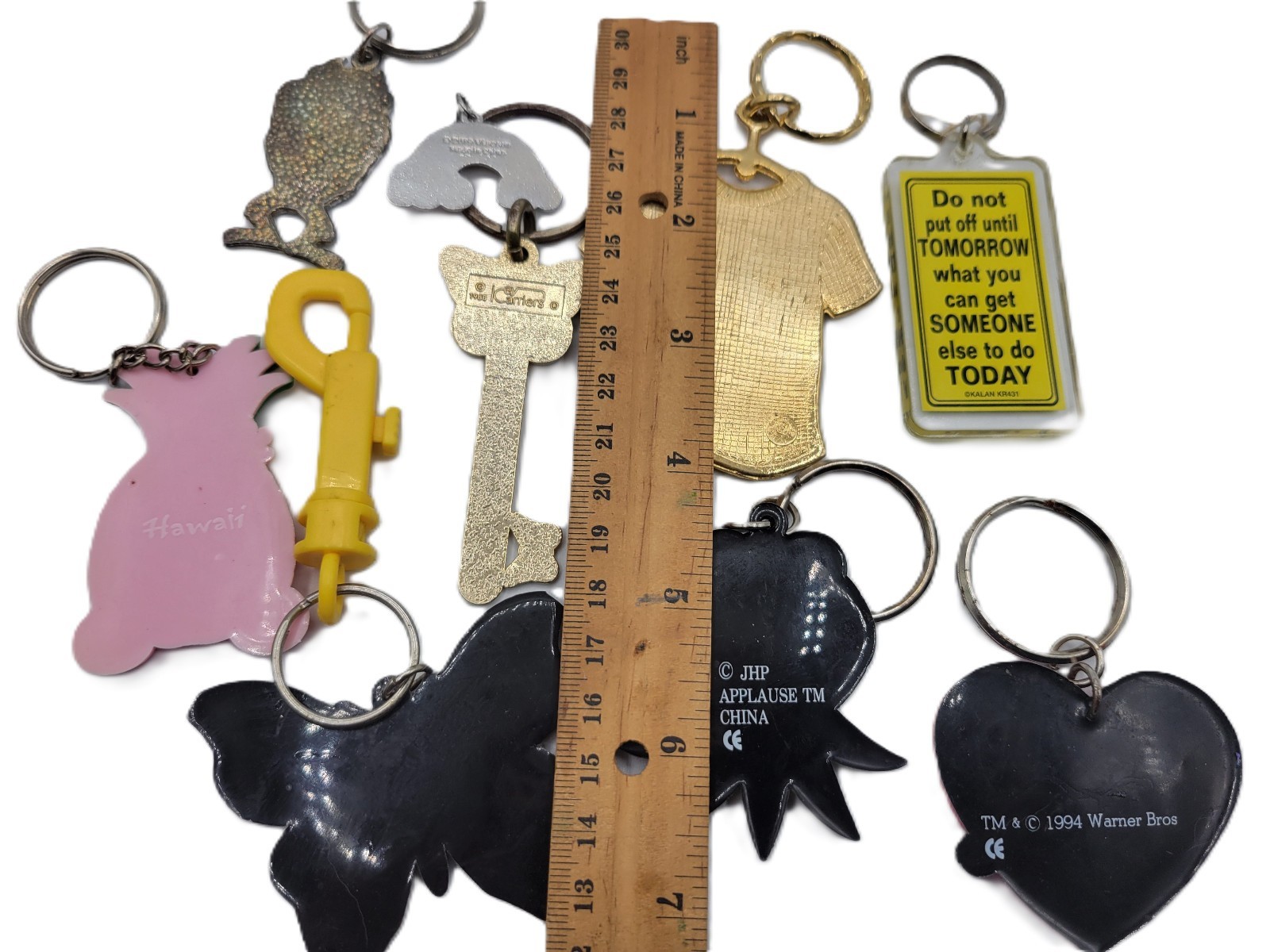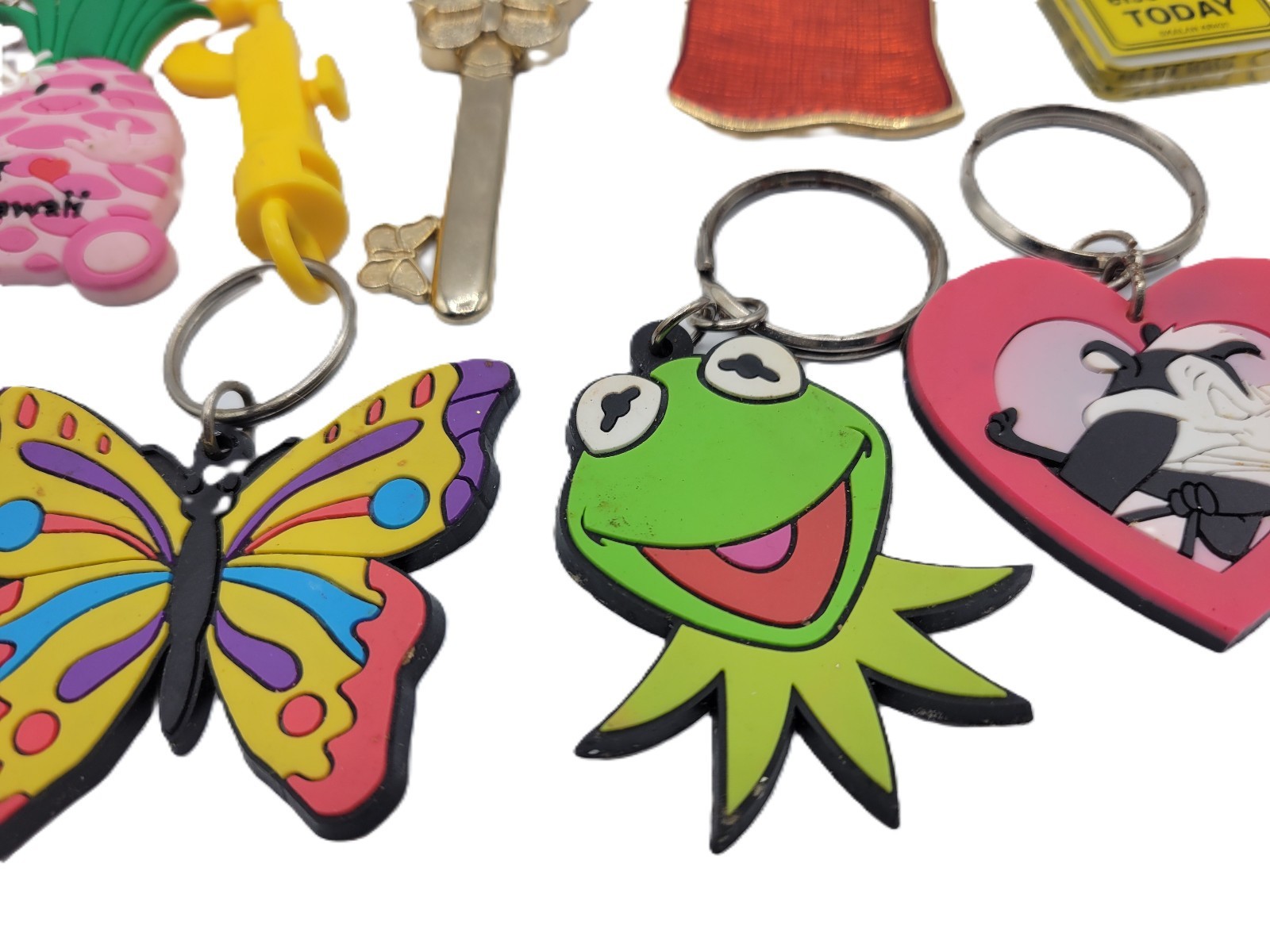 ? These 8 colorful cartoon key chains are a fun and unique collectible featuring metal and vinyl materials.