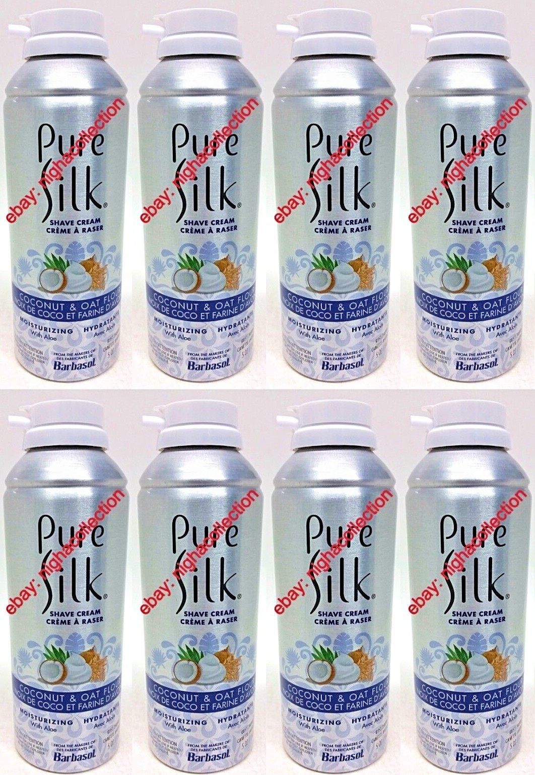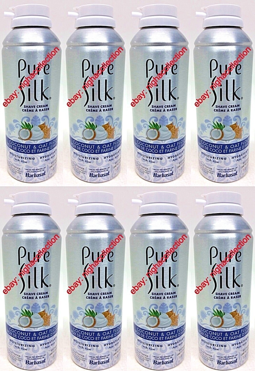 - 8 PACKS Pure Silk Shave Cream Coconut & Oat Flour Soothes Skin 5 oz (142g) Each