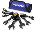 8-Piece Stubby Flex-Head Ratcheting Wrench Set | Metric 8-17mm | CRV & Pouch