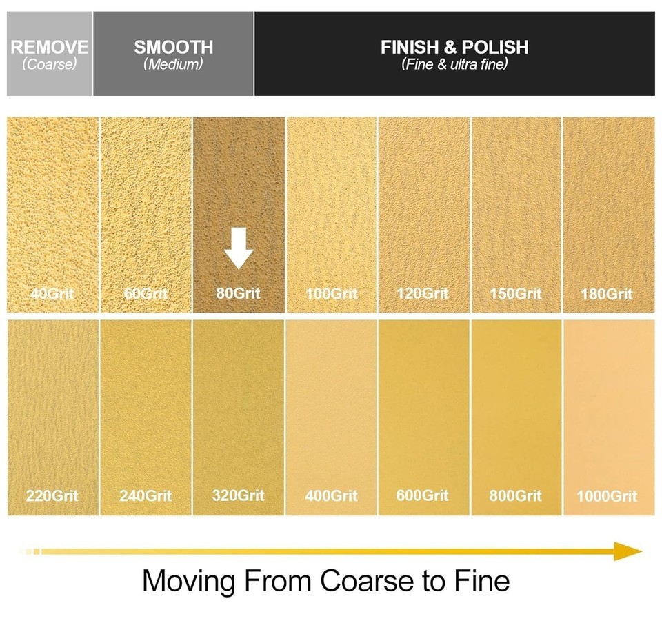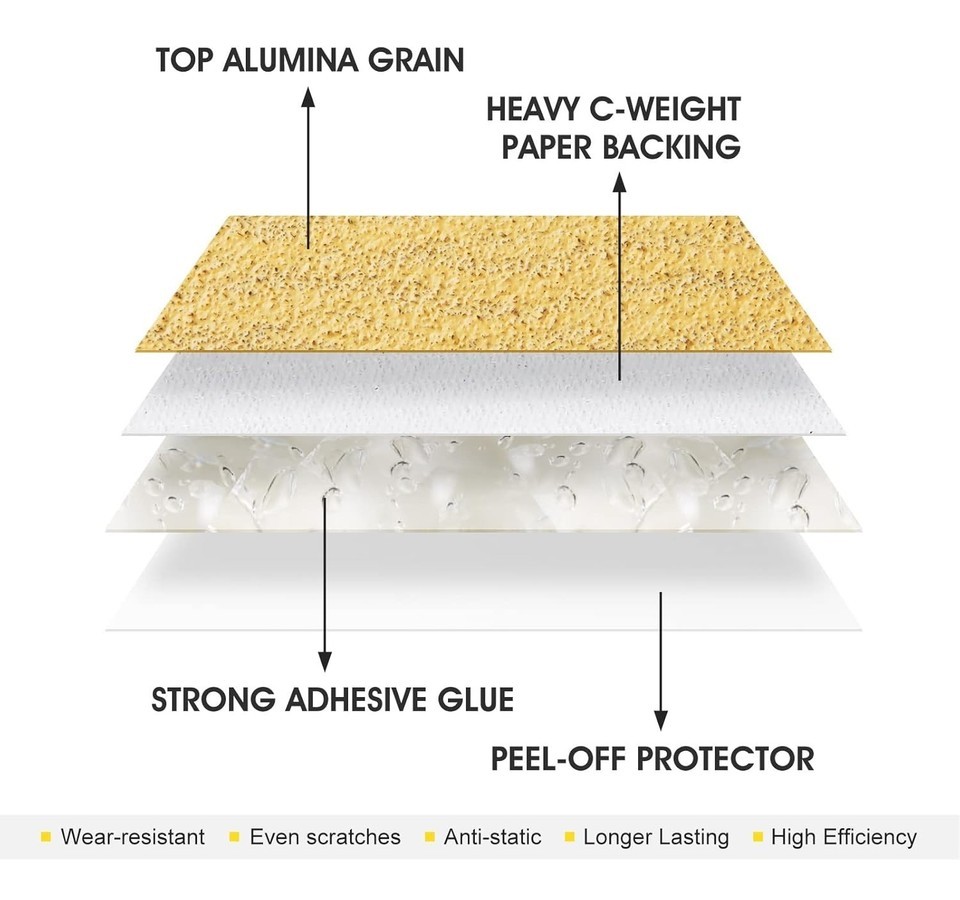 Clear Grit Indication: The grit size is indicated on the backing of the sandpaper, making it easy to distinguish between different grits at a glance.
