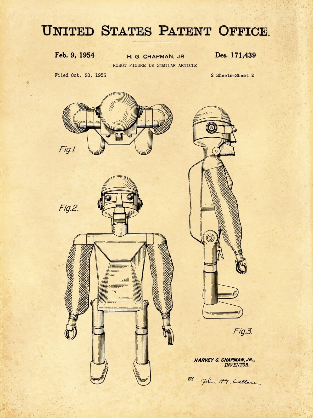 - 8310.Decoration Poster.Home Room design art print.Invention Patent of toy robot