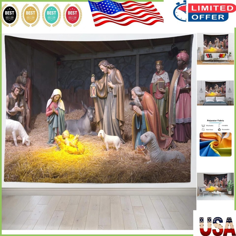 84x60 Inch Christmas Nativity Scene Tapestry - Beautiful Manger Wall Hanging