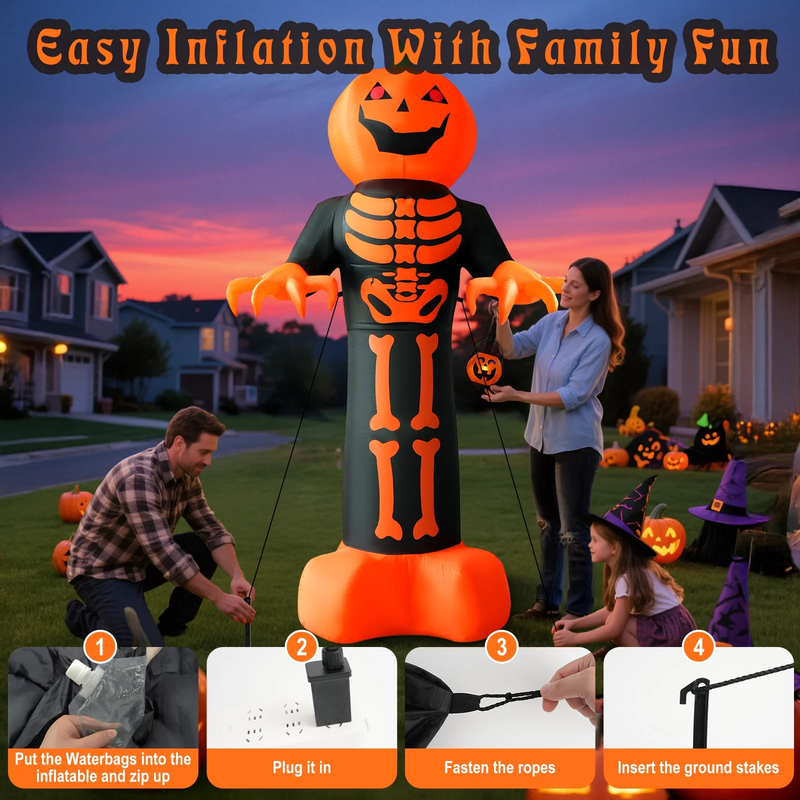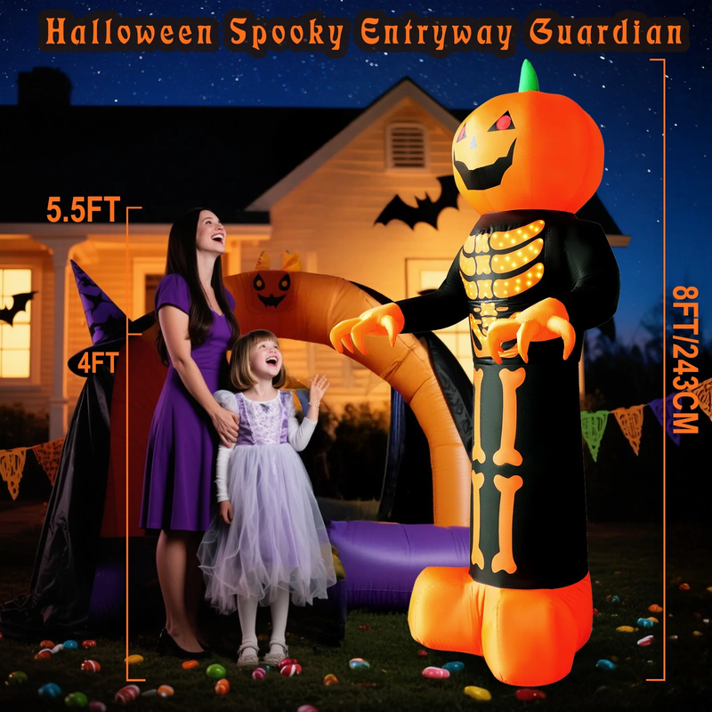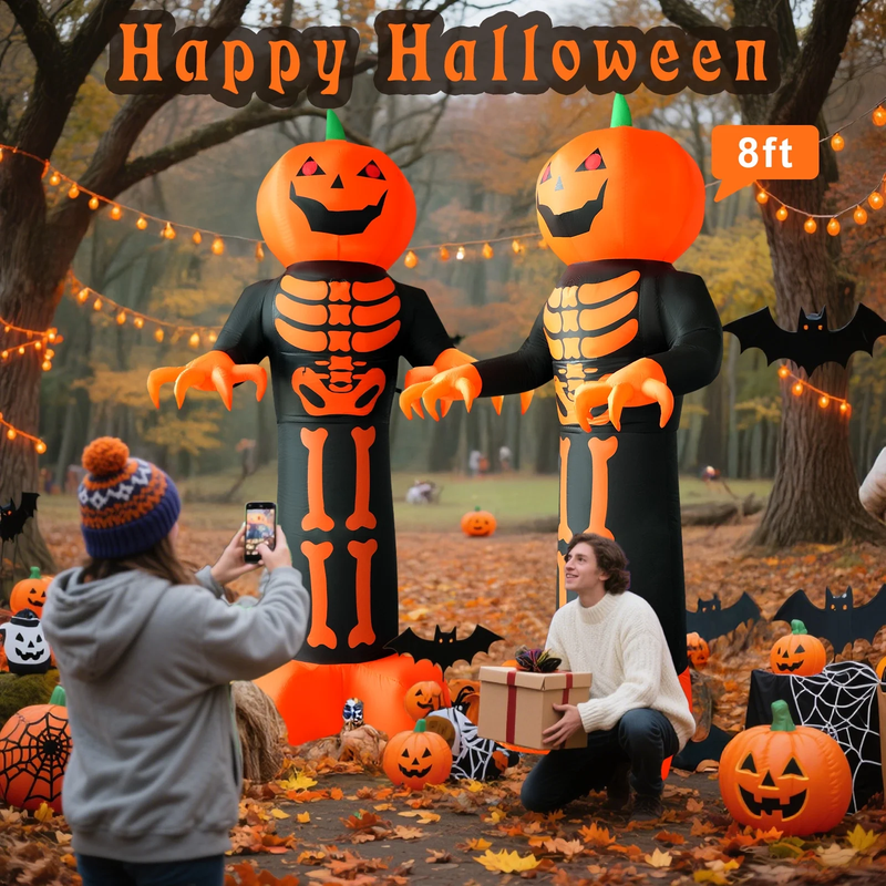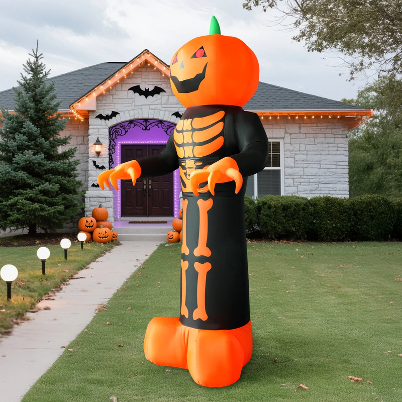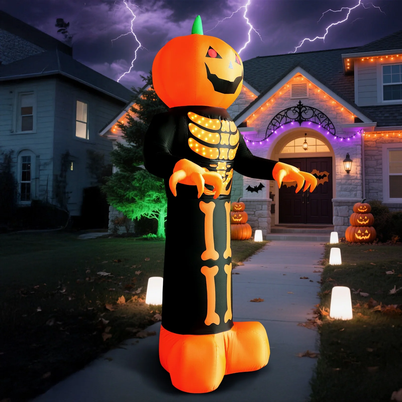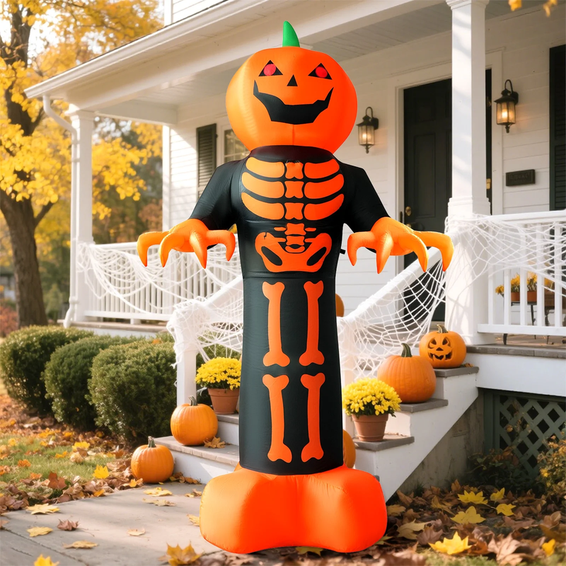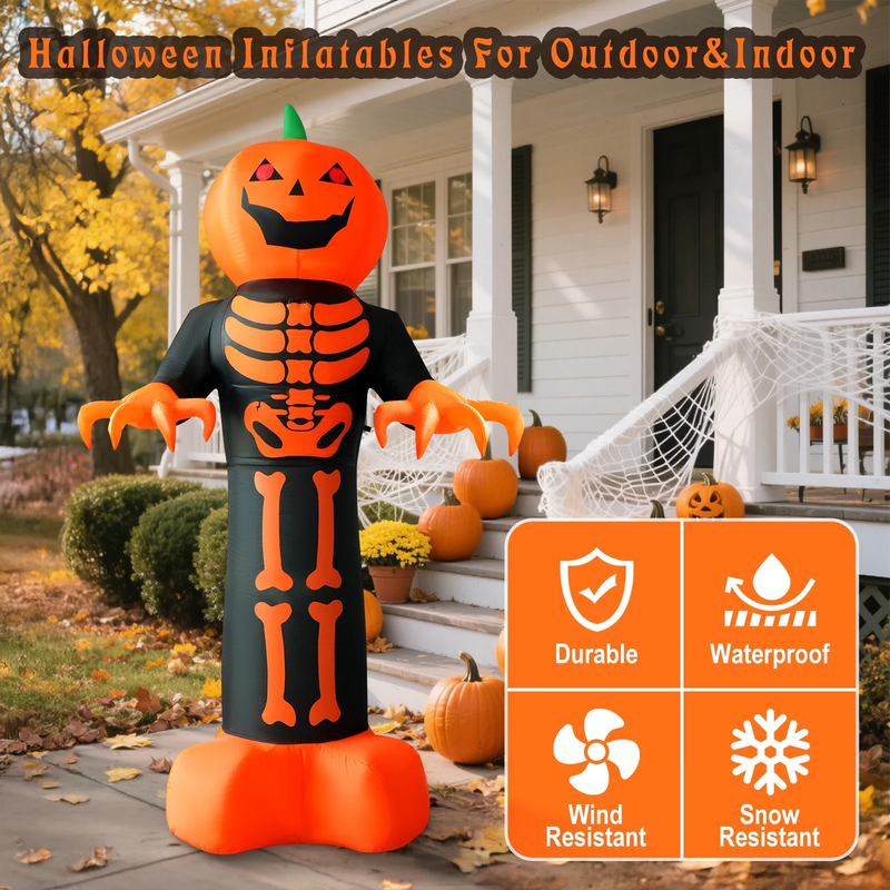 8FT Halloween Inflatable Blow up Decorations, Giant Skeleton Pumpkin Man Outdoor