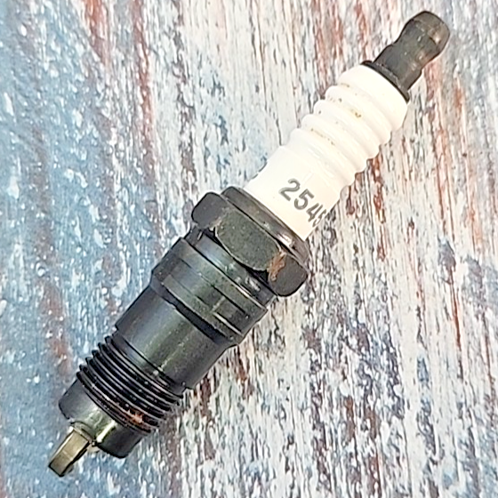 Exact item set is shown, Vintage new old stock spark plugs. Plugs may have small surface rust spots, as shown. 5/8 inch hex size, 14mm thread diameter, 20.5mm reach. Set weight 12 oz. Made in USA. No returns on installed items or partial sets. Please review our business policies in our store for information regarding returns, shipping and warranties.