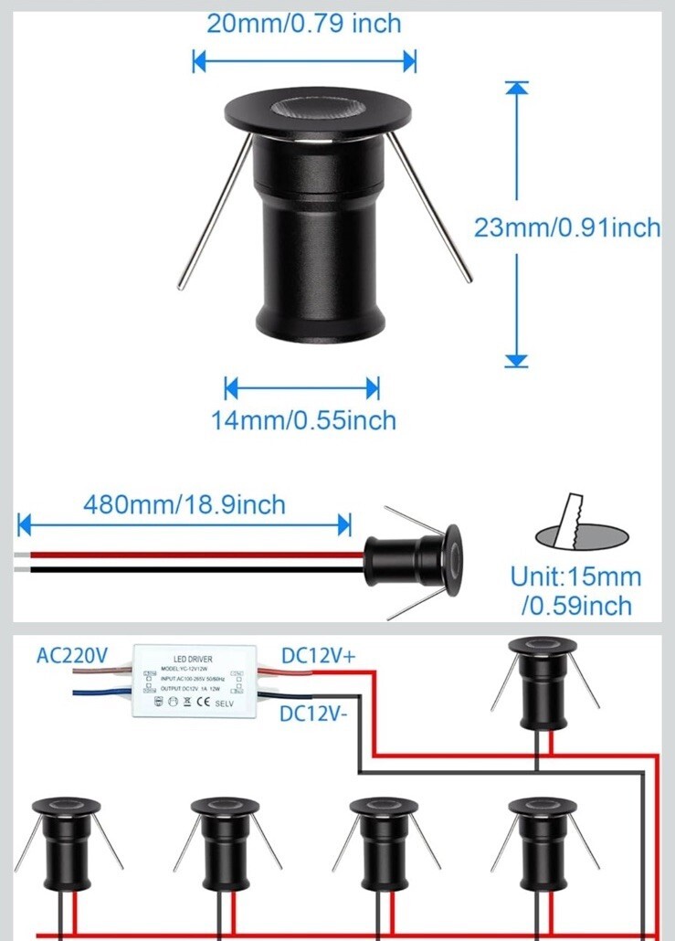 - 902 Led Mini Downlight DC12V 1WSuitable for bookcasescabinetsand Various Disp...