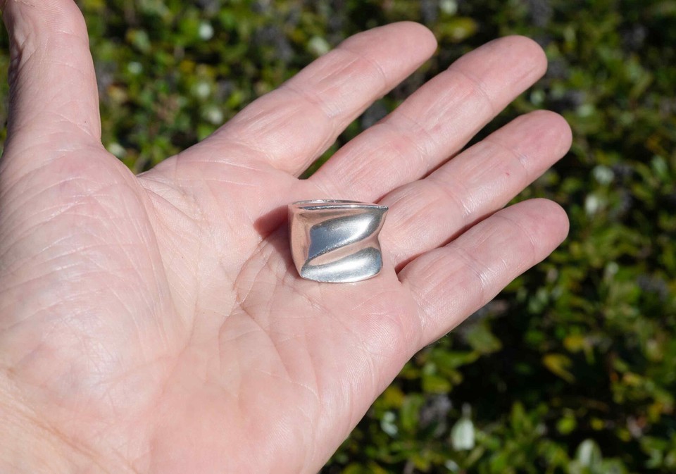 925 SOLID 16g STERLING SILVER POLISHED TRI-DOME RING SIZE-7.5 20mm SPIRAL WAVY