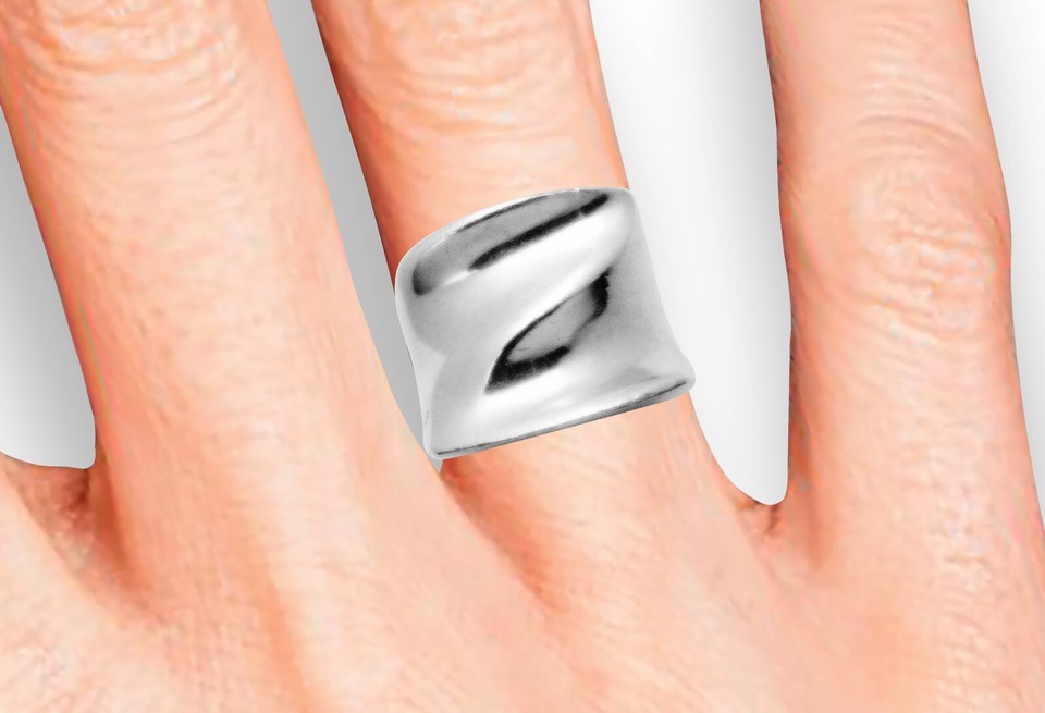 - 925 SOLID 16g STERLING SILVER POLISHED TRI-DOME RING SIZE-7.5 20mm SPIRAL WAVY
