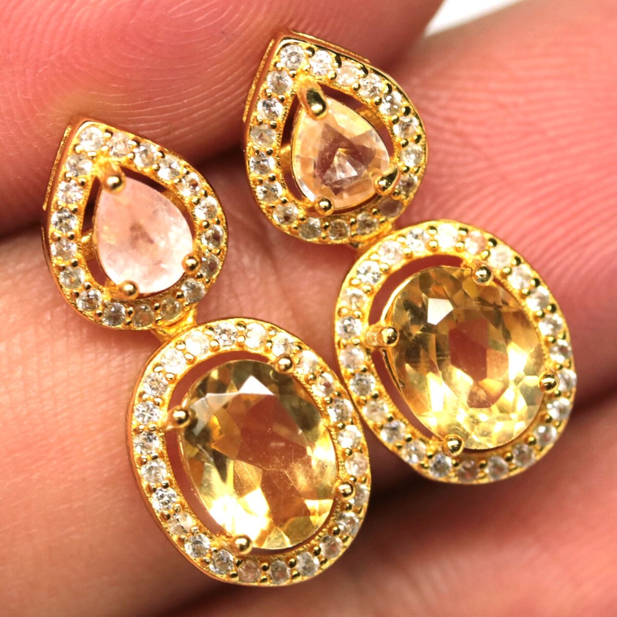 925 Sterling Silver 6 x 8 mm. Yellow Citrine, Sapphire Zircon Earrings
