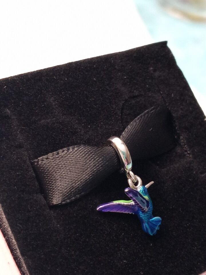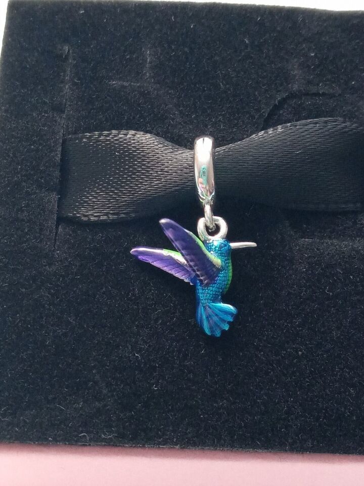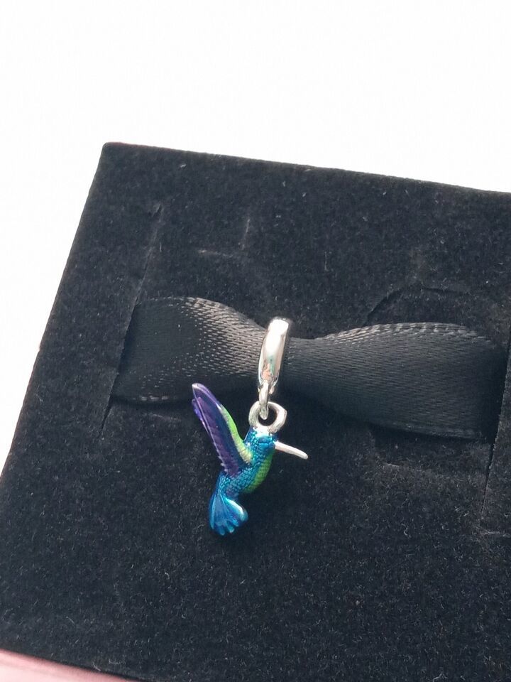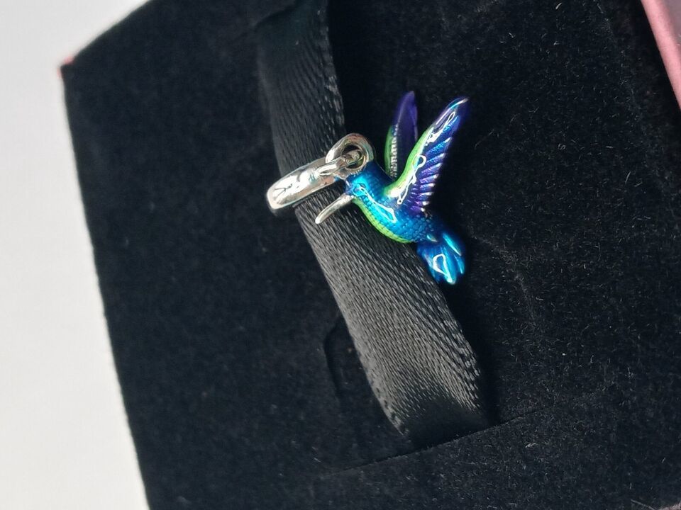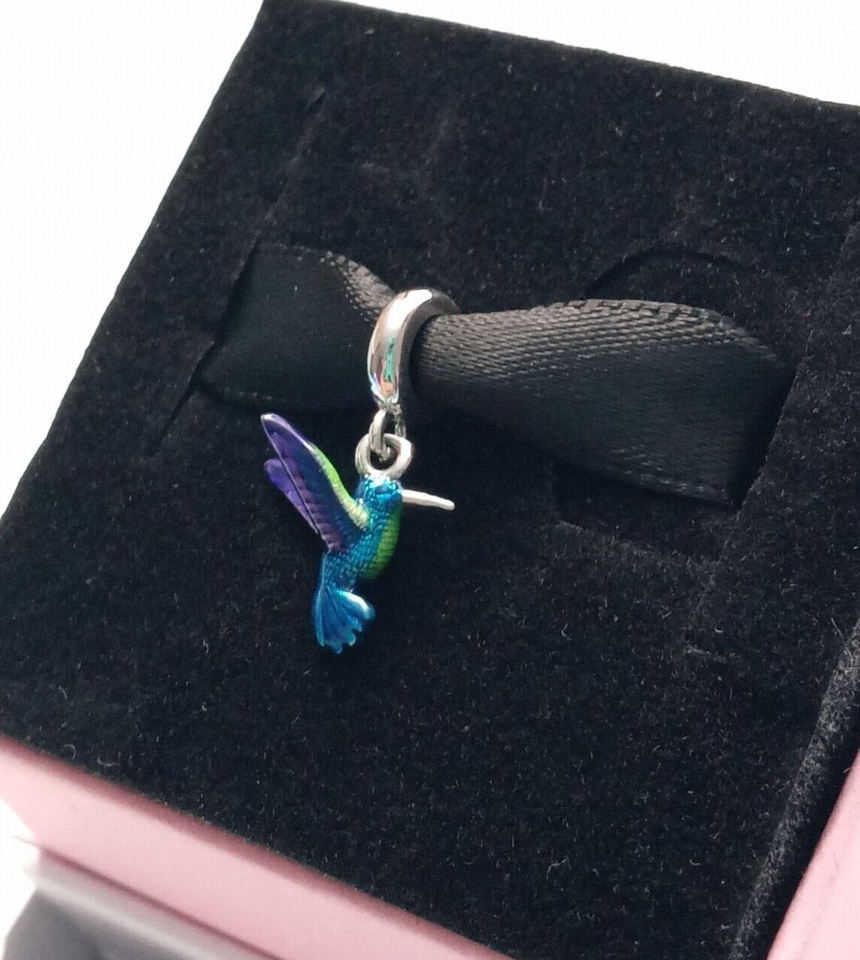 - 925 Sterling Silver Colorful Hummingbird Dangle Charm