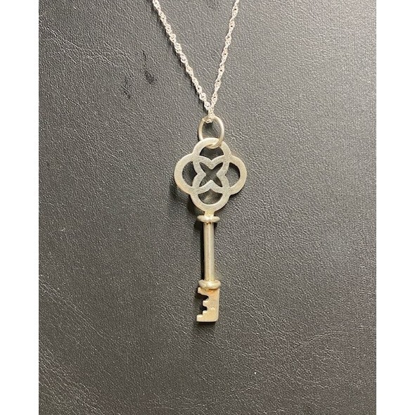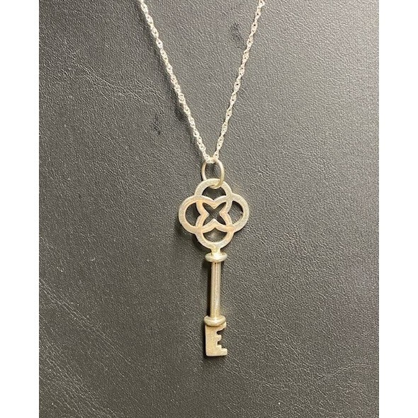 925 STERLING SILVER KEY PENDANT NECKLACE, ADJUSTABLE CHAIN SKY