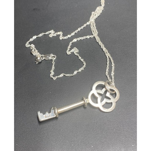 - 925 Sterling Silver Key Pendant Necklace, Adjustable Chain Sky