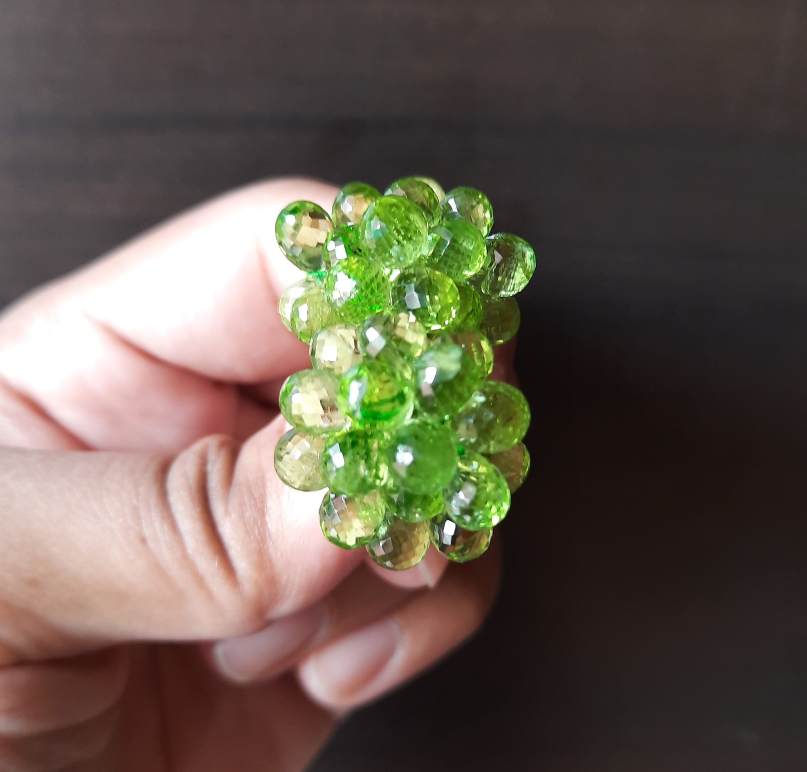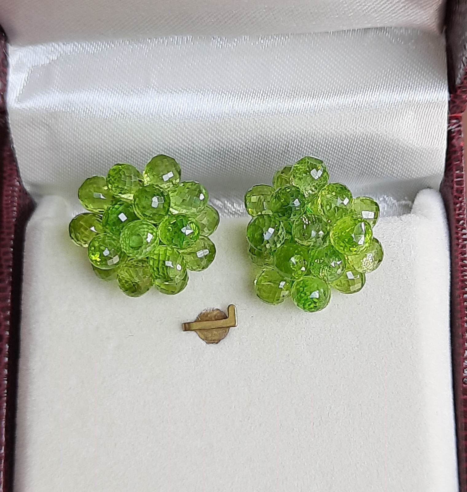 Foam shape Peridot Earrings made with smaller Peridot Drops of size 6mm by 4MM and width of the earring is 20MM.