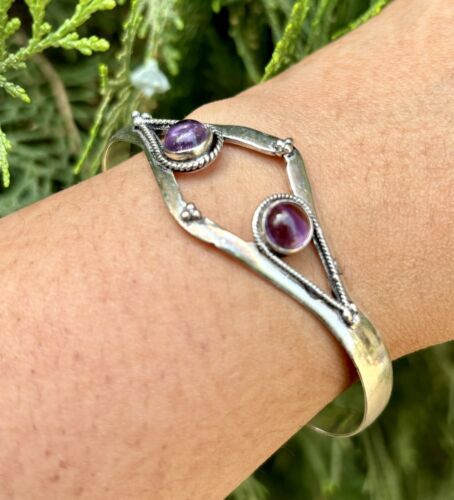 925 Sterling Silver Plated Natural Amethyst Cuff Bangle, Bracelet Jewelry 3