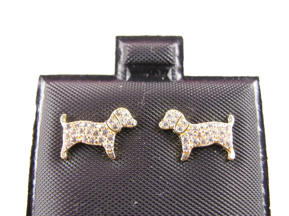 Primary image for 925 STERLING SILVER stamped EARRINGS DOG - with glitter stone gold colored