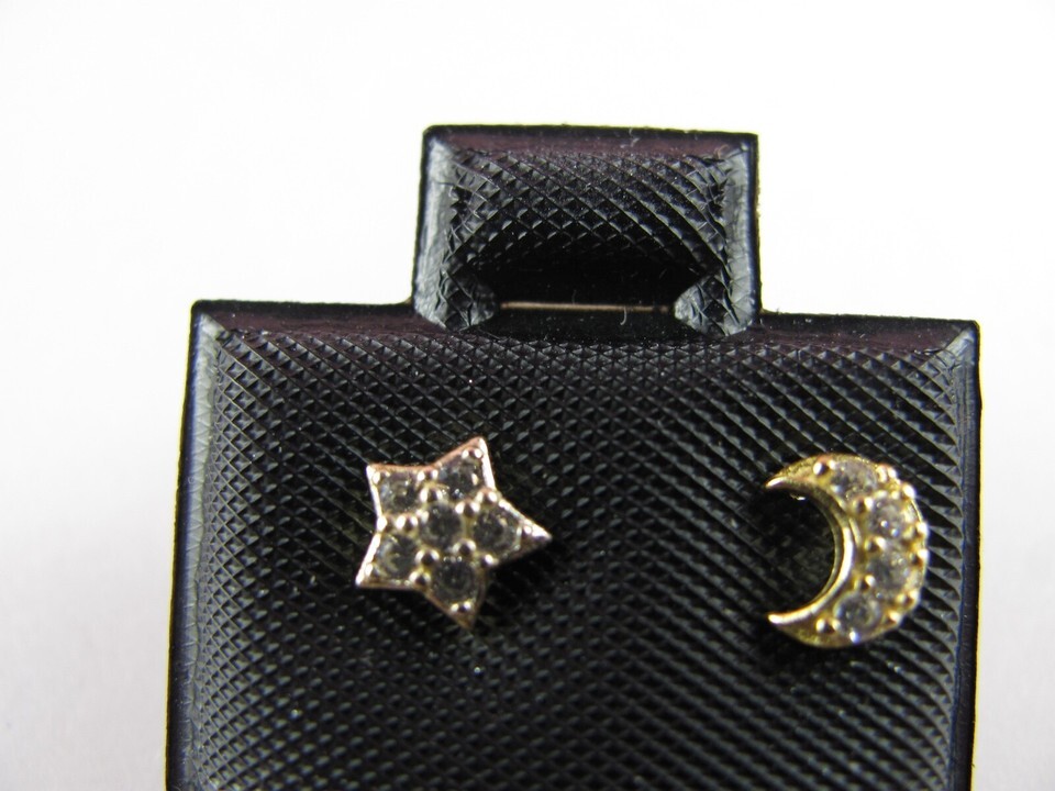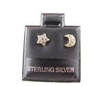 Primary image for 925 STERLING SILVER stamped EARRINGS STAR MOON - with glitter stone gold colored