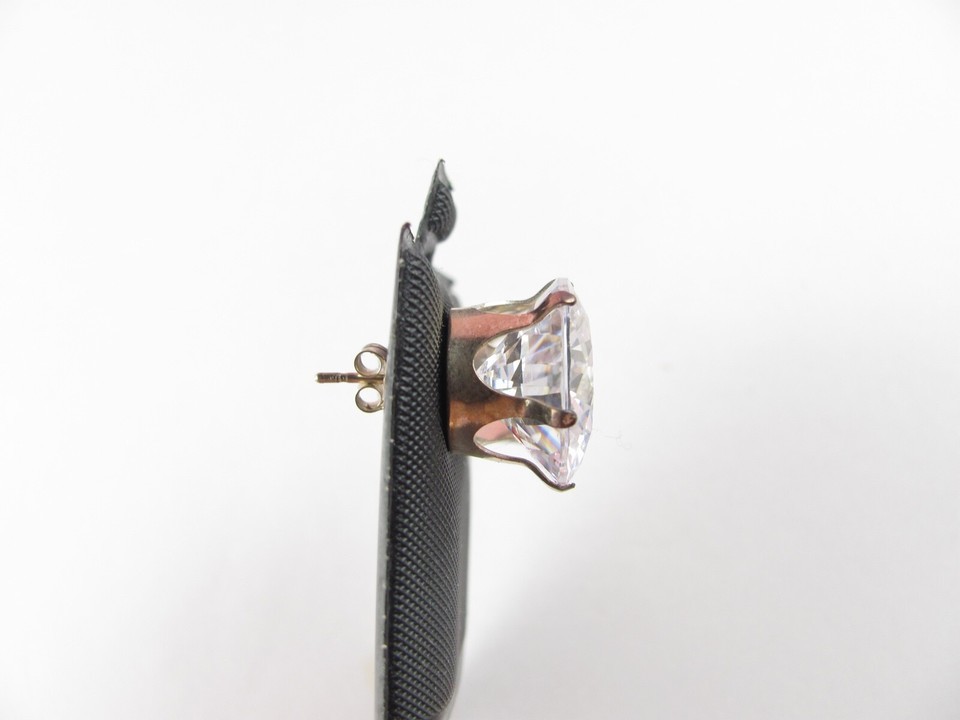 925 STERLING SILVER stamped EARRINGS with Glitter stone 15mm - BEST PRICE