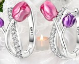 - 925 Sterling Silver Tulip Earrings – Pink & Purple Flower Hoop Jewelry Gift